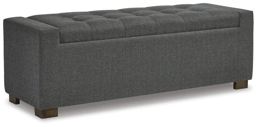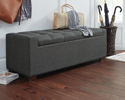 Signature Design by Ashley®Whether gracing a front entry or living room, or placed at the foot of the bed, this upholstered storage bench is loaded with flair. A tufted cushi...