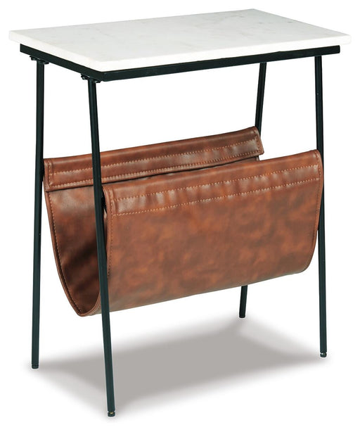 Signature Design by Ashley®With its mixed media design, this accent table with magazine holder is what’s new—and what’s you. A fusion of black metal, white marble and brown f...