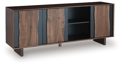 Signature Design by Ashley®This accent cabinet recalls the rugged textures of nature and brings them indoors. Live edge door fronts pop against the neutral finish for a refin...