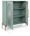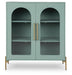 | Details | Made with engineered wood, Light green finish, Goldtone metal door pulls and legs, 2 doors with fluted glass panels, 2 shelves, Minor assembly required, simply lay flat and attach feet | |