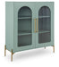 Clearly a stunning statement piece for lovers of contemporary design, this sleek accent cabinet wows on many levels. Magnificent arched fluted glass door panels and goldtone metal hardware exude serious modern flair. And how about that fresh green finish? Two shelves add practicality to the cabinet's striking style.