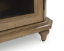 This lovely accent cabinet is a masterful blend of classic charm and practicality. A light brown finish and arched glass panel doors create a timeless look, while the spacious drawers and adjustable shelves offer versatile storage options. Convenient openings in the back for electronics keep those ugly cords out of sight.