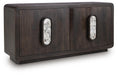 | Details | Made with solid mango wood, Back made with mango veneer and engineered wood substrate, Espresso brown finish, Oversized marble door pulls, 4 doors with soft-close hinges, 2 fixed shelves, Openings in back for electronics, Color variations, fissures, mineral deposits and veining in the marble pulls are naturally formed characteristics, Minor assembly required, simply attach door pulls | |