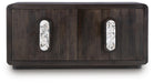 Function and style merge perfectly in this accent cabinet. Doors with oversized marble pulls open to reveal shelving, while the rounded edge design and espresso brown finish provide distinctive on-trend touches. Whether you use it to conceal clutter or as a TV stand, this exquisite piece defines modern elegance.