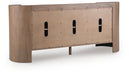 | Details | Made with solid mango wood, Back made with mango wood veneer and engineered wood substrate, Natural finish, White marble top, Black metal door pulls, 3 doors with soft-close hinges, 3 fixed shelves, Openings in back for electronics, Color variations, fissures, mineral deposits and veining in the marble top are naturally formed characteristics, Assembly required | |