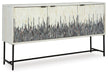 Looking for a showstopping accent for your home? This accent cabinet combines fashion and function in an exclusive way. It offers a creative take on a traditional cabinet, with a strip pattern in white, gray and black. Inside the doors, two shelves suit all your storage needs. Redefine your modern decor with this one-of-a-kind piece.