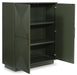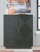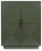 This accent cabinet makes a big impact with just one piece. Its intricately patterned doors impress with their dimension, while the dark green finish and sleek goldtone handles add a touch of modern elegance. Adjustable shelves add everyday functionality to this sophisticated yet approachable piece.