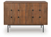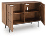 | Details | Made with solid mango wood, Back made with mango wood veneer and engineered wood substrate, Medium brown finish, 2 push magnet doors, 2 fixed shelves, Openings in back for electronics, Minor assembly required, simply lay flat and attach feet | |