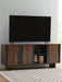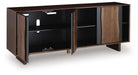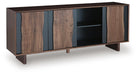 | Details | Made with acacia wood, acacia veneer and engineered wood, Medium brown and charcoal gray finishes, Hidden door pulls, Live edge door fronts, 2 doors with soft-close hinges, 1 sliding door, 2 fixed shelves, Openings in back for electronics, Due to the use of natural materials, some variations may occur, Minor assembly required; simply lay flat and attach feet | |