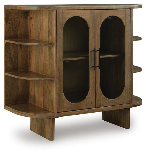 Signature Design by Ashley®Consumer's ChoiceThis accent cabinet is a stunning marriage of architectural intrigue and sophisticated storage. Its glass-paneled doors and natural wood tone creat...