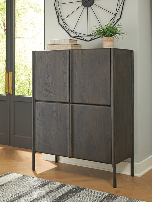 Signature Design by Ashley®Consumer's ChoiceSleek. Striking. Sculptural. This accent cabinet refines the art of functional fashion. Outfitted in a luxe dark brown finish, it’s an apt addition...