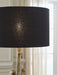 Illuminate your contemporary space with this table lamp. Finished in an antiqued goldtone, it makes a statement displayed solo, or as a pair flanking your sofa or sectional. A black shade keeps the look right on trend.
