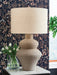 This table lamp clearly outlines your style. Finished in a textured earthy hue, it delivers a relaxed vibe that radiates warmth and comfort. It's perfect for a family room, bedroom or reading nook.