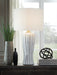 | Details | Made of polyresin with drum hardback fabric shade, Antiqued gray finish, 3-way switch, 1 E26 socket, type A bulb recommended (not included); 150 watts max or LED equivalent; UL Listed, Minor assembly required; simply attach preassembled shade to lamp base | |