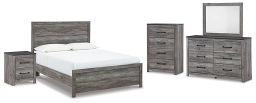 Bronyan Queen Panel Bed with Mirrored Dresser, Chest and Nightstand