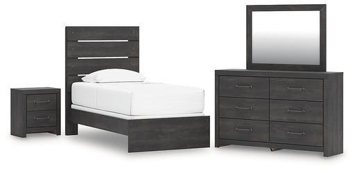 Hollivern Twin Panel Bed with Mirrored Dresser and Nightstand