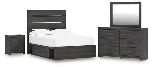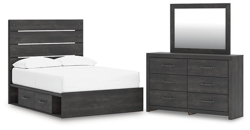 Hollivern Full Panel Bed with Storage with Mirrored Dresser