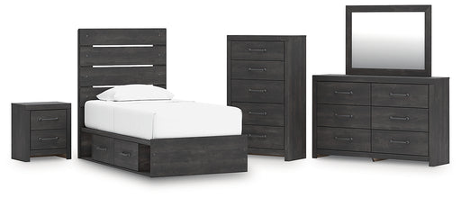 Hollivern Twin Panel Storage Bed with Mirrored Dresser and Nightstand