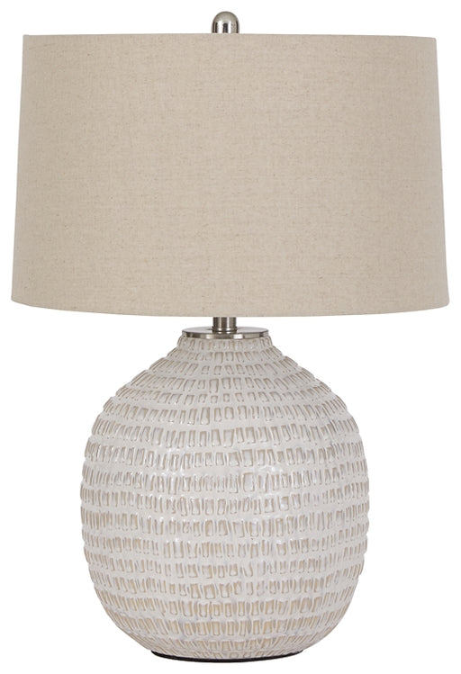 Signature Design by Ashley®Brighten up your space with the handcrafted artisanal feel of this table lamp. A distressed white finish gives it an any-room neutrality, while the...