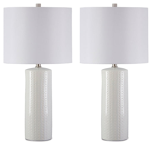 Signature Design by Ashley®These sculptural table lamps are an enlightening choice for those with an eye for clean-lined, modern design. The textured cutout base and sleek re...