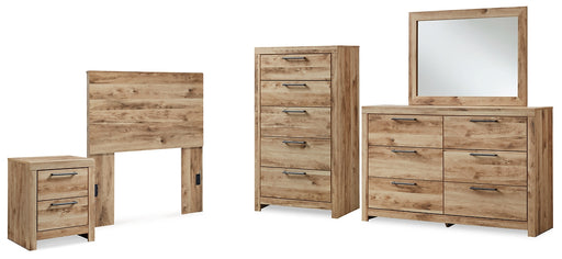 Hyanna Twin Panel Headboard with Mirrored Dresser, Chest and Nightstand