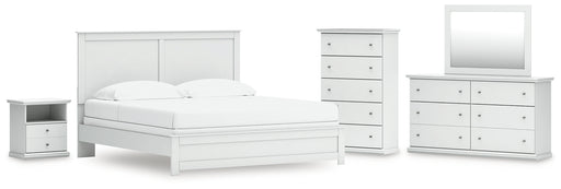 Brinxton King Panel Bed with Mirrored Dresser, Chest and Nightstand