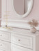 | Details | PCB1819B6: Includes upholstered panel headboard, panel footboard and rails, Made with engineered wood (MDF/particleboard/plywood) and decorative laminate for the right balance of affordability and durability , Matte white finish, Decorative laminate replicates natural or man-made material surfaces with consistent color, pattern and texture , Polyester upholstery, Acrylic ball tops, Pink, purple and white LED lighting options; touch button control, Power cord included; UL Listed, Foundation/box spring required, sold separately , Mattress available, sold separately, Minor assembly required, PCB1819B2: Includes dresser and mirror, Made with engineered wood (MDF/particleboard/plywood) and decorative laminate for the right balance of affordability and durability , Matte white finish, Decorative laminate replicates natural or man-made material surfaces with consistent color, pattern and texture , Crystal drawer knobs, 6 smooth-gliding drawers, Drawer interiors are lined with a faux linen laminate for a clean, finished look, Safety is a top priority, clothing storage units are designed to meet the most current standards for stability, ATM F 2057 (ASTM International), Drawers extend out to accommodate maximum access to drawer interior while maintaining safety, Mirror can be mounted on wall vertically , Minor assembly required, | |