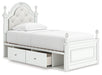 Kozlani Twin Upholstered Panel Storage Bed, Dresser, Mirror and Nightstand