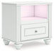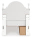 | Details | PCB1819B9: Includes upholstered panel headboard, panel footboard, roll slats and side storage with rails, Made with engineered wood (MDF/particleboard/plywood) and decorative laminate for the right balance of affordability and durability , Matte white finish, Decorative laminate replicates natural or man-made material surfaces with consistent color, pattern and texture , Polyester upholstery, Crystal drawer knobs; acrylic ball tops, 2 smooth-gliding drawers; drawer interiors are lined with a faux linen laminate for a clean, finished look, Open cubbies accommodate any 10.5" W x 10.5" D x 11" H storage bin (not included), Pink, purple and white LED lighting options; touch button control, Power cord included; UL Listed, Bed does not require additional foundation/box spring; accommodates most zero clearance adjustable bases with the addition of a bunkie board, Mattress available, sold separately, Minor assembly required, PCB1819B2: Includes dresser and mirror, Made with engineered wood (MDF/particleboard/plywood) and decorative laminate for the right balance of affordability and durability , Matte white finish, Decorative laminate replicates natural or man-made material surfaces with consistent color, pattern and texture , Crystal drawer knobs, 6 smooth-gliding drawers, Drawer interiors are lined with a faux linen laminate for a clean, finished look, Safety is a top priority, clothing storage units are designed to meet the most current standards for stability, ATM F 2057 (ASTM International), Drawers extend out to accommodate maximum access to drawer interior while maintaining safety, Mirror can be mounted on wall vertically , Minor assembly required, PCB1819-91: Made with engineered wood (MDF/particleboard/plywood) and decorative laminate for the right balance of affordability and durability, Matte white finish, Decorative laminate replicates natural or man-made material surfaces with consistent color, pattern and texture, Crystal drawer knob, 1 smooth-operating drawer, Drawer interior is lined with a faux linen laminate for a clean, finished look, Open shelf, USB-A and USB-C charging ports, Pink, purple and white LED lighting options; touch button control, Power cord included; UL Listed, Minor assembly required, | |