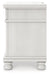 Details PCB823B2: Includes headboard/footboard panels, posts and poster rails , Made with hardwood solids, veneers and MDF substrates , Side rails feature laminated solid hardwood slat support rails (or LVL) with glued and screwed blocking for added strength, Rubbed antiqued white finish , Foundation/box spring required, sold separately, Mattress available, sold separately , Assembly required, PCB823B1: Includes dresser and mirror, Dresser made with hardwood solids, veneers and MDF substrates , Mirror made with solid wood, Rubbed antiqued white finish, Metal hardware with pewter-tone finish, 8 smooth-gliding drawers with fully finished interiors, French/English dovetail construction and heavy-duty ball-bearing side glides, Top drawers felt lined, Mirror attaches to back of dresser, PCB823-93: Made with hardwood solids, veneers and MDF substrates, Rubbed antiqued white finish, Metal hardware with pewter-tone finish, 3 smooth-gliding drawers with fully finished interiors, French/English dovetail construction and heavy-duty ball-bearing side glides, Top drawer felt lined, 110V power supply with USB-A and USB-C charging ports, Power cord included; UL listed,