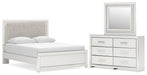 Zuraleus Queen Upholstered Panel Platform Bed, Dresser and Mirror