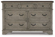 Cottage quaint styling and quality construction make this dresser a dream come true. A two-tone finish provides rustic warmth, with an antiqued gray body and a rich, deep walnut on the top. Framed drawer fronts and dark bronze-tone hardware marry classic elegance and homey charm. Seven smooth-gliding drawers are crafted with quality dovetail construction.