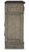 Details Made with acacia wood, birch and acacia veneers, engineered wood and cast resin components, Two-tone finish; antiqued gray body with a rich, deep walnut brown finish on top, Dark bronze-tone bails and knobs, 7 smooth-gliding drawers with dovetail construction, Framed drawer fronts, Overlay decorative corbels