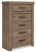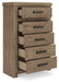 | Details | Made with engineered wood (MDF/particleboard/plywood) and decorative laminate for the right balance of affordability and durability, Natural rustic finish over replicated oak grain with authentic touch, Decorative laminate replicates natural or man-made material surfaces with consistent color, pattern and texture, Large-scale hooded pulls with dark bronze-tone finish, 5 smooth-gliding drawers, Safety is a top priority, clothing storage units are designed to meet the most current standard for stability, ASTM F 2057 (ASTM International), Drawers extend out to accommodate maximum access to drawer interior while maintaining safety, Minor assembly required | |
