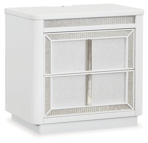 Signature Design by Ashley®This nightstand is a showstopper, bringing a touch of modern glamour to your sanctuary. A sleek white finish and inset glitter accents create a sop...