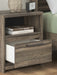Casually cool style and lots of storage go hand in hand with this nightstand. A weathered brown finish over replicated oak grain creates an easygoing vibe, setting the scene in your restful retreat. The nightstand's clean lines and modern handles provide a fuss-free look. You’ll find its drawer and cubby to be spacious, and the USB charging keeps up with your high-tech lifestyle.