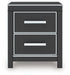 Details Made with engineered wood (MDF/particleboard/plywood) and decorative laminate for the right balance of affordability and durability, Matte black finish with subtle replicated wood grain, Decorative laminate replicates natural or man-made material surfaces with consistent color, pattern and texture, Chrome-tone accents, Large-scale chrome-tone handles with faceted details, 2 smooth-gliding drawers, Drawer interiors are lined with a faux linen laminate for a clean, finished look, Slim profile USB-A and USB-C charging ports, Power cord included; UL Listed, Minor assembly required