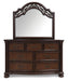 | Details | B764B10: Includes poster headboard/footboard panels, rails and headboard posts, Made with hardwood solids, cherry veneer with MDF substrates, decorative cast resin and furniture grade plastic components , Cherry brown finish, Headboard with metallic accent filigree, Foundation/box spring required, sold separately, Mattress available, sold separately, Assembly required, B764B1: Includes dresser and mirror, Made with hardwood solids, cherry veneer with MDF substrates, decorative cast resin and furniture grade plastic components , Cherry brown finish, Decorative metal drawer pulls with dark bronze-tone finish, 7 drawers with fully finished interior, dovetail construction and ball-bearing side glides, Mirror attaches to back of dresser, B764-46: Made with hardwood solids, cherry veneer with MDF substrates, decorative cast resin and furniture grade plastic components, Cherry brown finish, Decorative metal drawer pulls with dark bronze-tone finish, 5 drawers with fully finished interior, dovetail construction and ball-bearing side glides, B764-93: Made with hardwood solids, cherry veneer with MDF substrates, decorative cast resin and furniture grade plastic components, Cherry brown finish, Decorative metal drawer pulls with dark bronze-tone finish, 2 drawers with fully finished interior, dovetail construction and ball-bearing side glides, Pull-out tray behind bottom drawer, | |