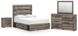 Graystorm Full Panel Bed with Storage with Mirrored Dresser and Nightstand