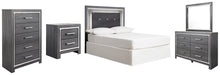 Lodanna Full Upholstered Panel Headboard Bed with Mirrored Dresser, Chest and Nightstand