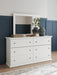 | Details | B139B47: Includes panel headboard/footboard and rails, Made with engineered wood (MDF/particleboard/plywood) and decorative laminate for the right balance of affordability and durability, Replicated solid white paint, Decorative laminate replicates natural or man-made material surfaces with consistent color, pattern and texture, Foundation/box spring required, sold separately, Mattress available, sold separately, Assembly required, B139B40: Includes dresser and mirror, Made of engineered wood (MDF/particleboard), Knobs with pewter-tone finish, Scalloped moulding, 6 smooth-operating drawers, Includes tipover restraint device, Mirror attaches to back of dresser; can also be mounted on wall horizontally or vertically, Safety is a top priority, clothing storage units are designed to meet the most current standard for stability, ASTM F 2057 (ASTM International), Drawers extend out to accommodate maximum access to drawer interior while maintaining safety, B139-91: Made of engineered wood (MDF/particleboard), Pewter-tone knobs, 1 smooth-operating drawer, 1 storage cubby, Scalloped moulding, Small Space Solution, | |