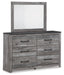 | Details | B1290B2: Includes queen panel headboard/footboard and rails, Made with engineered wood (MDF/particleboard/plywood) and decorative laminate for the right balance of affordability and durability, Smoky gray finish over replicated oak grain with authentic touch, Decorative laminate replicates natural or man-made material surfaces with consistent color, pattern and texture, Foundation/box spring required, sold separately, Mattress available, sold separately, Assembly required, Bed is compatible with an adjustable base, B1290B1: Includes dresser and mirror, Made with engineered wood (MDF/particleboard/plywood) and decorative laminate for the right balance of affordability and durability, Two-tone look: smoky gray replicated oak grain accented with rustic charcoal finish; replicated oak grain with authentic touch, Charcoal finish over replicated oak grain with authentic touch, Decorative laminate replicates natural or man-made material surfaces with consistent color, pattern and texture, Large-scaled handles in a dark hue, 6 smooth-gliding drawers with dovetail construction, Drawer interiors are lined with a faux linen laminate for a clean, finished look, Framed front and pilasters, Mirror attaches to back of dresser; can also be mounted on wall horizontally or vertically, Safety is a top priority, clothing storage units are designed to meet the most current standard for stability, ASTM F 2057 (ASTM International), Drawers extend out to accommodate maximum access to drawer interior while maintaining safety, Assembly required, B1290-92: Expertly made with engineered wood (MDF/particleboard) for the right balance of affordability and durability, Decorative laminate replicates natural or man-made material surfaces with consistent color, pattern and texture, Two-tone look: smoky gray replicated oak grain accented with rustic charcoal finish; replicated oak grain with authentic touch, Large-scaled handles in a dark hue, 2 smooth-gliding drawers with dovetail construction, Drawer interiors are lined with a faux linen laminate for a clean, finished look, Framed front and pilasters, Assembly required, | |