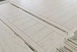 Details D642-32: Made with rubberwood solids, ash veneer and MDF substrates, Antiqued white finish with wood grain texture, Tabletop with planked effect, Two 12” extension leaves, Table extends by pulling both ends and dropping in leaf, Assembly required, D642-124: Made with wood, Antiqued white finish with wood grain texture, Foam cushion with polyester upholstery, Nailhead trim, X-back, Assembly required,