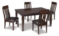 Take clean-lined, classic styling. Add modern comfort. Top with a deep, complex finish that exudes rich sophistication. That’s the look and feel of this dining table set with built-in butterfly leaf extension to accommodate guests. Four rake-back upholstered chairs make it complete.