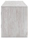Details Made with engineered wood (MDF/particleboard/plywood) and decorative laminate for the right balance of affordability and durability, Whitewash replicated worn through paint with authentic touch, Decorative laminate replicates natural or man-made material surfaces with consistent color, pattern and texture, Integrated door pulls, 2 cabinets, each with an adjustable shelf, Open center shelf, Compatible with W100-703 fireplace insert (sold separately), Assembly required