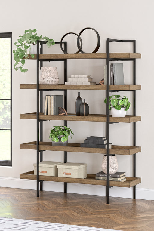 Signature Design by Ashley®Consumer's ChoiceGot books? Bring them to this bookcase. Its industrial mix of dark wood and black metal brings trendsetting vibes to your home. Four sturdy shelves...