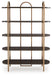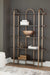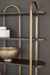 Details Shelves made of ash veneer and engineered wood, Metal frame, Frame with antiqued goldtone finish, 5 fixed shelves with dark brown finish, Assembly required