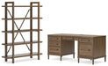 | Details | H769-21: Made with hardwood solids, oak veneer and MDF substrate, Brown oak finish, Wood and metal drawer pulls, 5 standard drawers; 1 file drawer, Drawers with dovetail construction, fully finished interiors and ball-bearing side glides, 110V power supply with USB-A and USB-C charging ports, Power cord included; UL Listed, Open raceway for power cord management, Assembly required, H769-70: Frames made with solid wood, Shelves made with hardwood solids, oak veneer and MDF substrate, Brown oak finish, 5 shelves, Back brace set with metal hook and keepers, Assembly required, | |