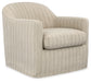 Create a cozy corner that moves with you. This accent chair's smooth 360-degree swivel allows you to effortlessly turn to join the conversation or reach for a nearby drink. With light and breezy striped fabric and a tailored slip cover design, this stylish piece beautifully complements casual decor.