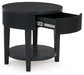 Classic and cool in dark charcoal, this end table brings contemporary convenience to your living room. Short on storage? The trendy reeded apron conceals a drawer perfect for remotes, controllers and other entertainment accessories. What a perfect marriage of style and functionality.